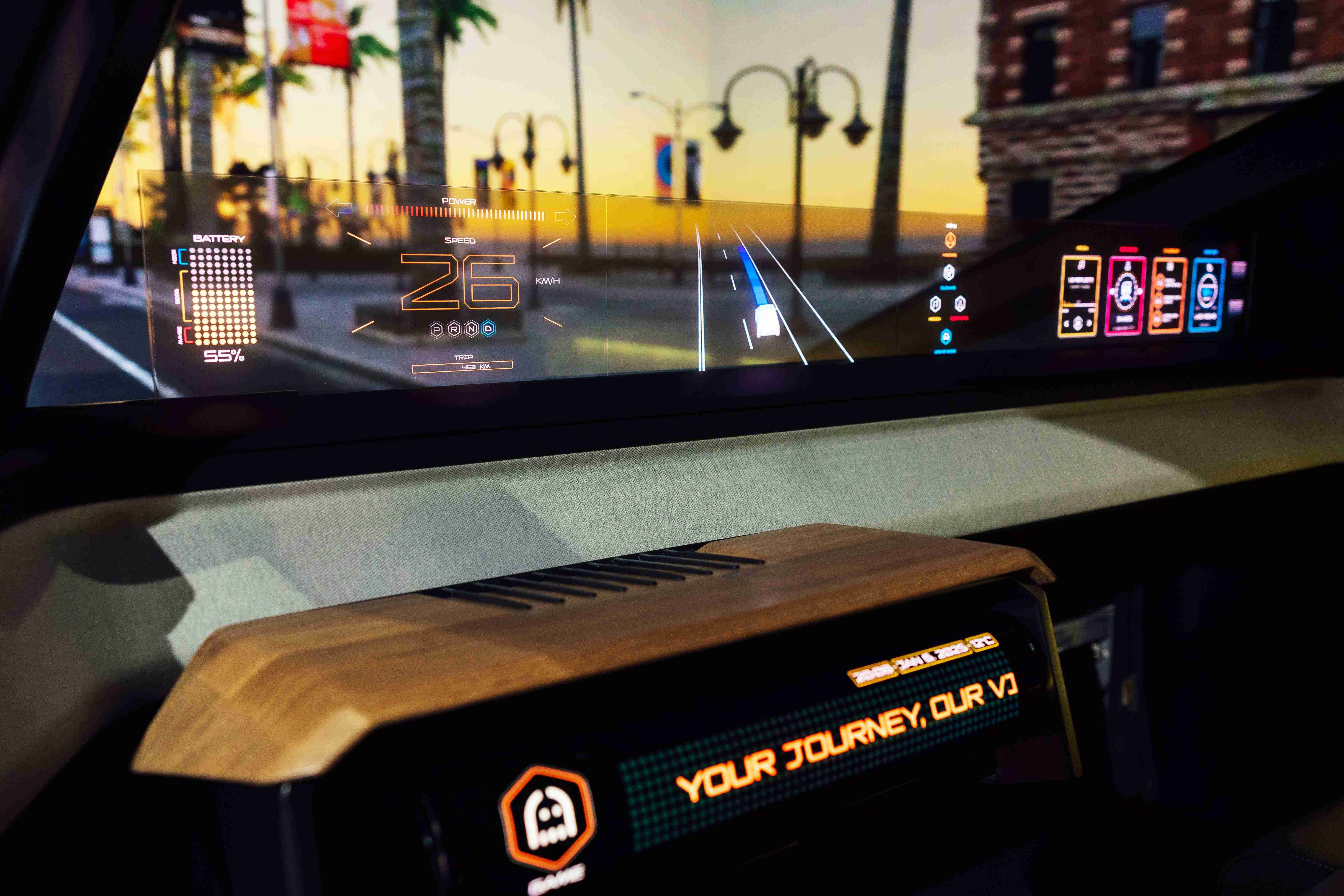 幻境全景天幕(Virtual Sky Canopy)将无缝拼接大型化的透明Micro LED显示器融入至天窗,,带来沉浸式体验,,,将人机介面扩展至整个座舱。。。。 巨星国际光电以人性化的设计引领直觉式的人机互动,,,透过多变形态中控显示(Morphing Center Control)、、、隐藏式智驾介面(Foldable Cruise Pilot)等解决方案,,,让乘用者依据自身需求调整、、控制座舱内所需功能。。。。